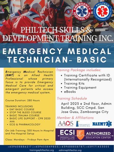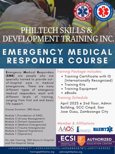 PHILTECH Skills & Training Development Inc. offers Emergency Medical Responder Course for interested people to learn the basic First Responder Courses.